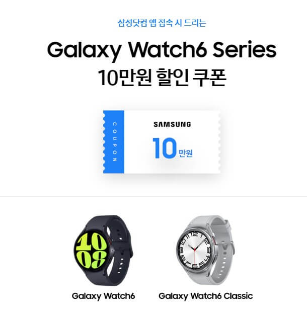 1. 갤럭시워치6 시리즈 10만원 할인 쿠폰을 드립니다.