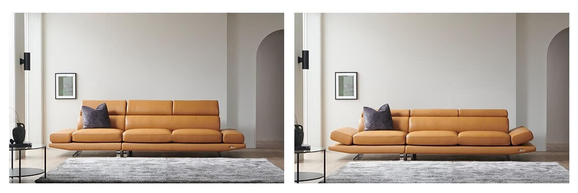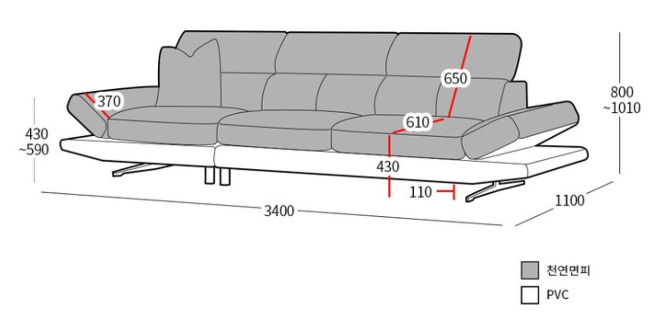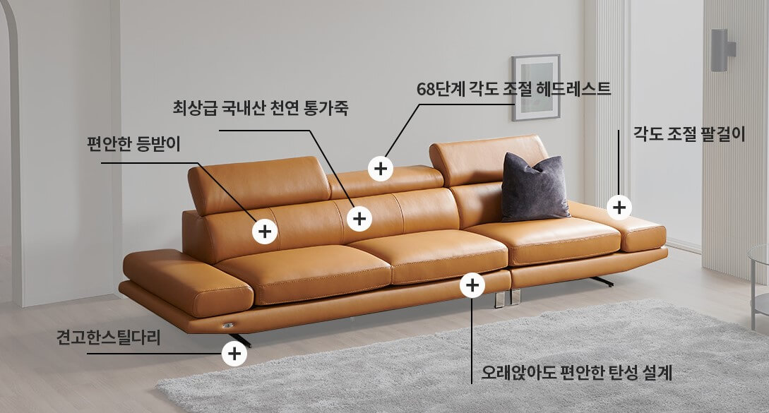 헤드레스트를 모두 올렸을 때는 소파가 더욱 넓고 웅장해 보입니다.