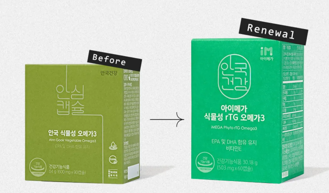 기존 식물성 오메가3 제품이 아이메가 식물성 rTG 오메가3 제품으로 리뉴얼 되었습니다.