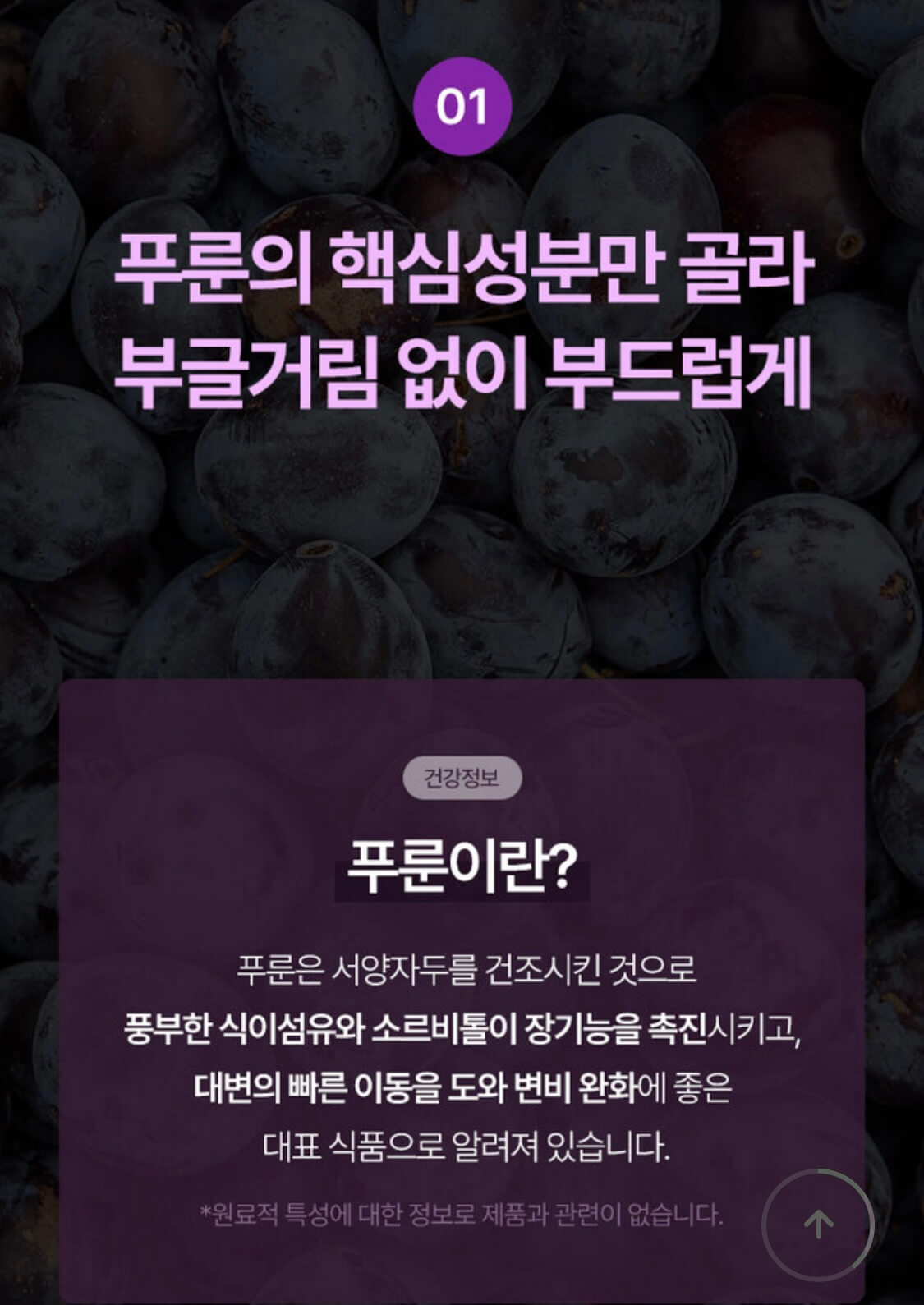 1. 푸룬의 핵심성분만 골라 부글거림 없이 부드럽게